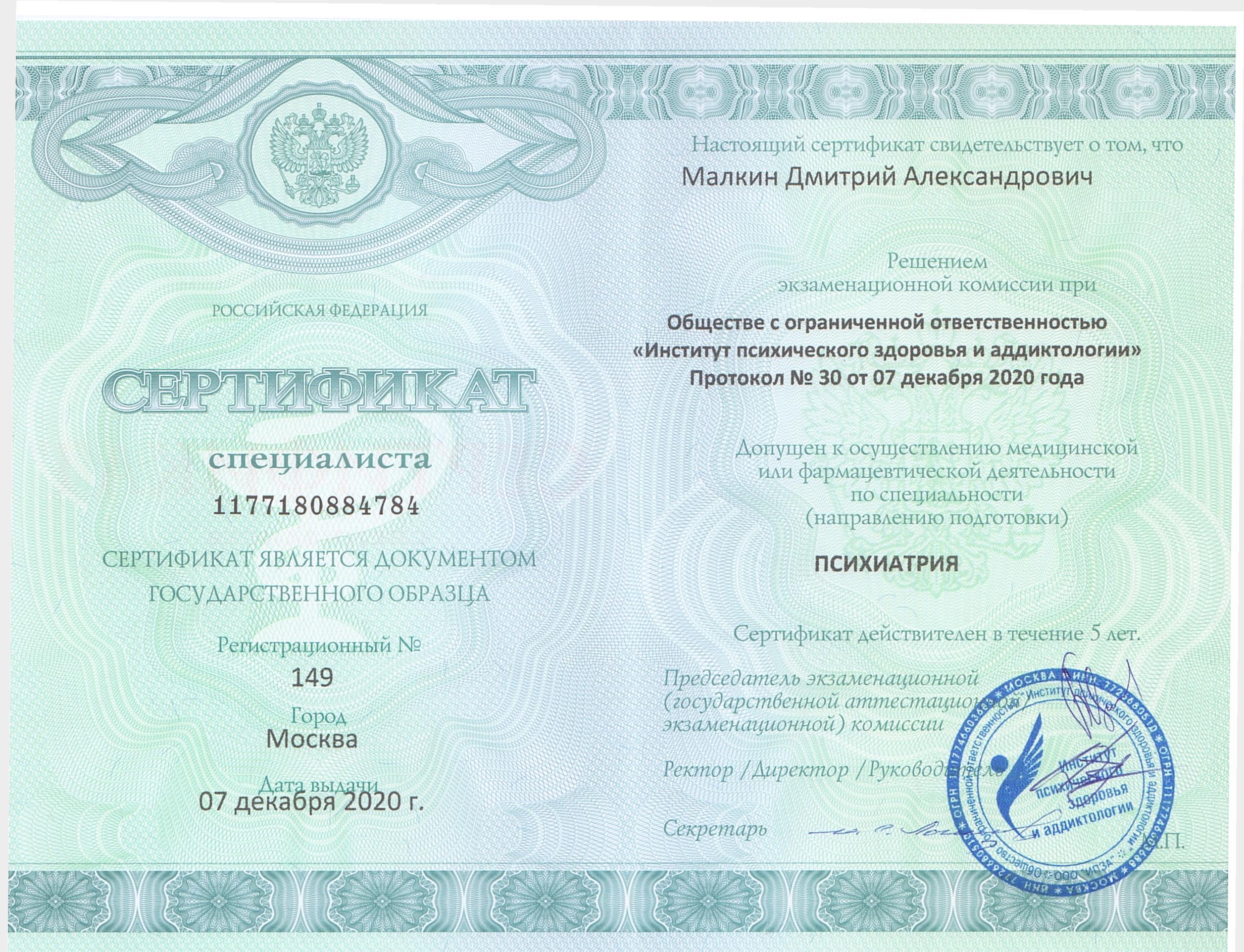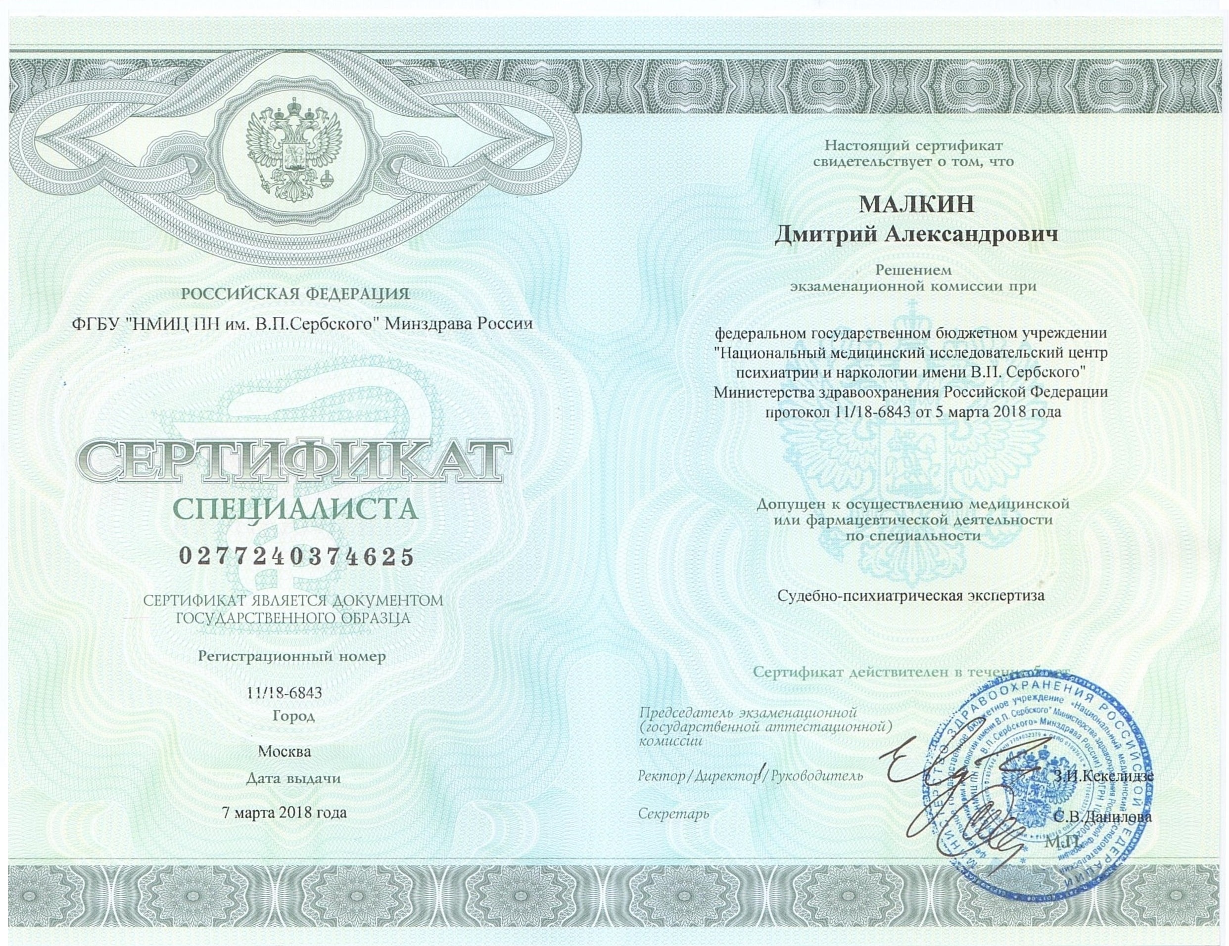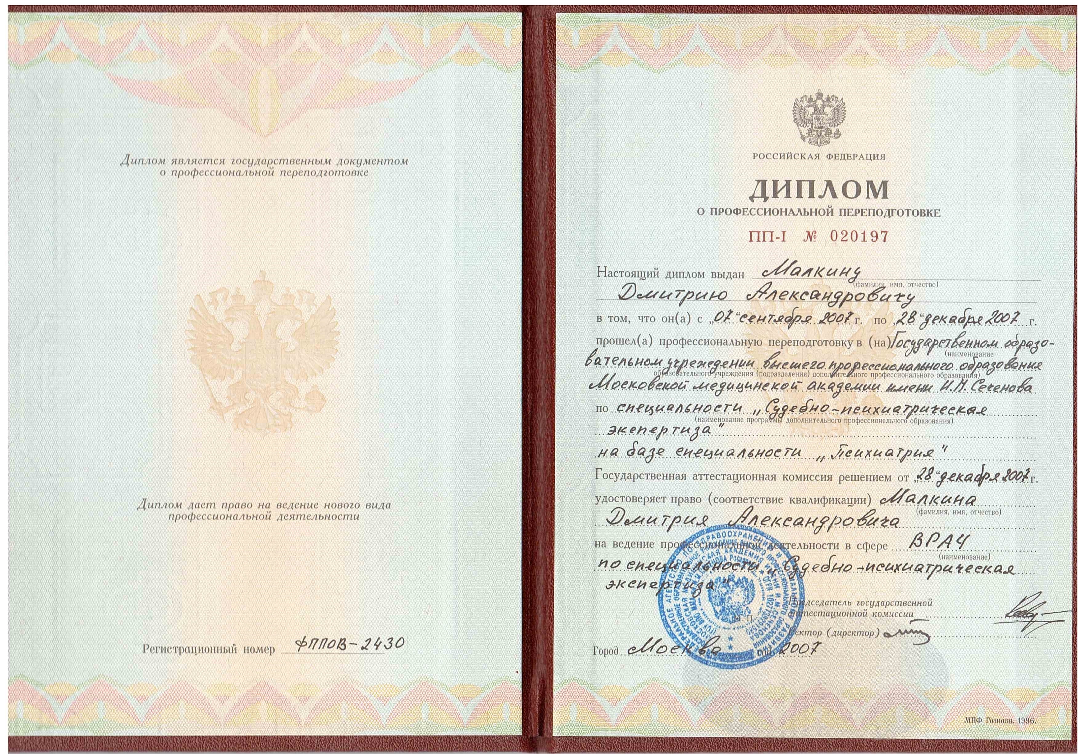 После окончания университета с красным дипломом в период с 1998г. по 2000г. проходил обучение в клинической ординатуре по психиатрии ГНЦССП им. В.П.Сербского.